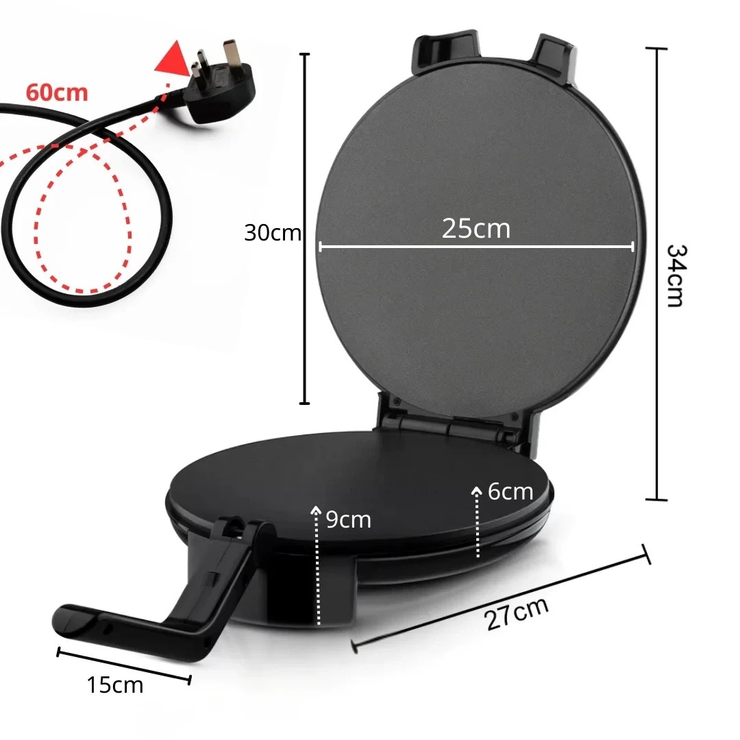 الجهاز رح يوفر عليك وقت وجهد، بتحط العجينة وبتسكر الغطا، وخلال لحظات الخبز بيكون جاهز. تسخين من فوق ومن تحت بنفس الوقت، ما في مناطق تطلع محروقة وأماكن ناية. مناسب للروتي، الكريب، الخبز العربي، وحتى الفطائر. وما رح تتغلب بالتنظيف، لأن السطح ما بيلزق وبمسحة وحدة برجع جديد.